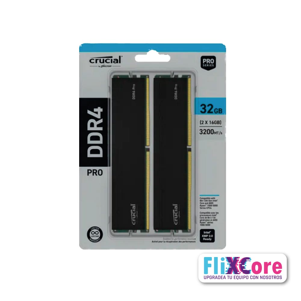 Este kit de memoria RAM Crucial DDR4 Pro Series 2x16GB 3200MHz es una solución confiable y rentable para potenciar sistemas, ofreciendo excelente relación calidad-precio. Para confirmar compatibilidad, usa herramientas como Crucial System Scanner o verifica las especificaciones de tu placa base.